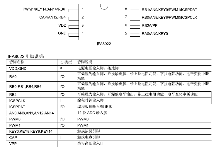 您當前位置>: 首頁 > 產品中心 > 觸摸控制MCU > IFA8022觸摸型MCU