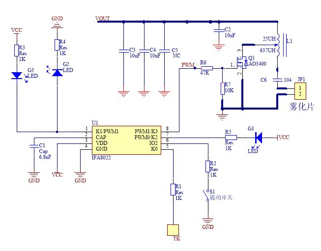 IFA8022還可以通過編程實現水面霧化(微孔霧化)補水儀功能,通過編程輸出100-120KHz的PWM正弦波,驅動微孔霧化片,是性價比最高的單片觸摸霧化驅動方案芯片。