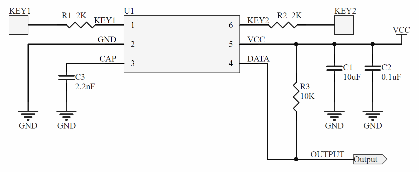 1、當介質材料及厚度等差異較大時,可通過調整 C3 采樣電容容值來調節觸摸靈敏度。電容容值越大,靈敏 度越高;電容容值越小,靈敏度越低,建議用NPO級別的多層電容或者滌綸電容。
